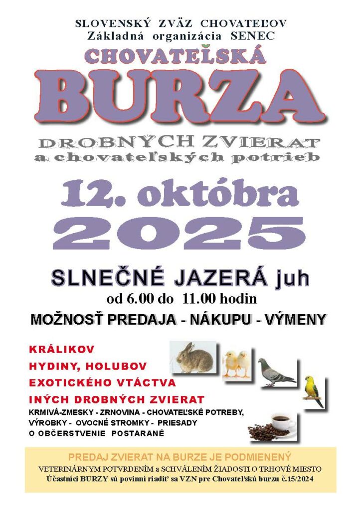 Kalendár chovateľskej burzy ZO Senec pre rok 2025